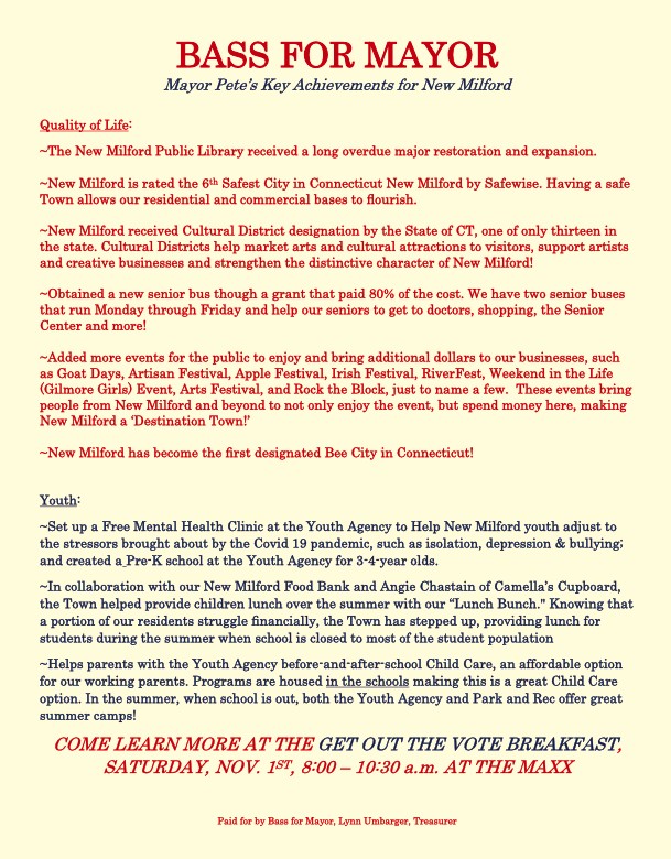 As a native New Milfordite whose ancestors were among the first to settle here, it’s in my DNA to be concerned about our wonderful community. Beginning with the Girl Scouts, serving as Chairperson ...